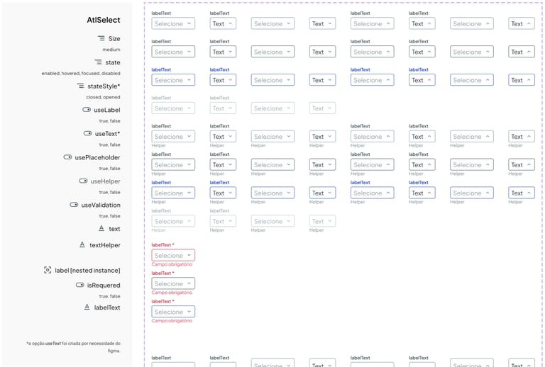Página completa de componentes no Figma