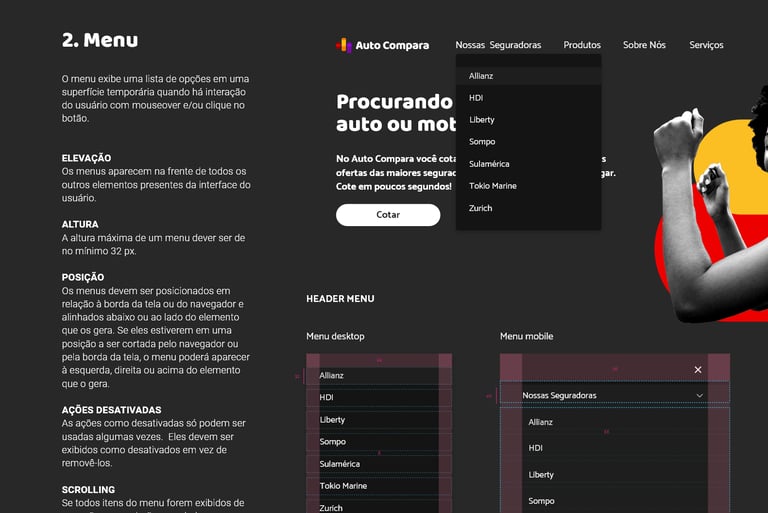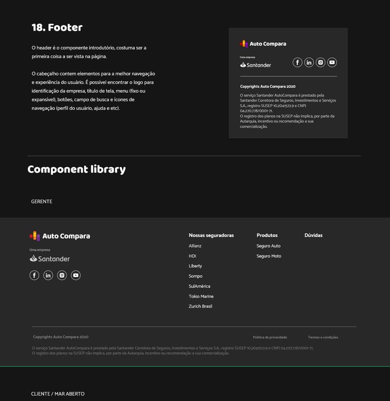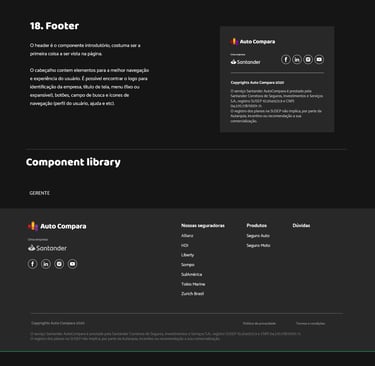 O principal desafio desse projeto foi estruturar um Design System robusto e versátil que pudesse sustentar toda a aplicação da AutoCompara, uma plataforma 100% digital do Grupo Santander voltada para comparação e contratação de seguros. A necessidade era criar uma base sólida de design que unificasse a linguagem visual, padronizasse componentes e tornasse os fluxos mais consistentes, escaláveis e eficientes para múltiplos times de desenvolvimento e design.