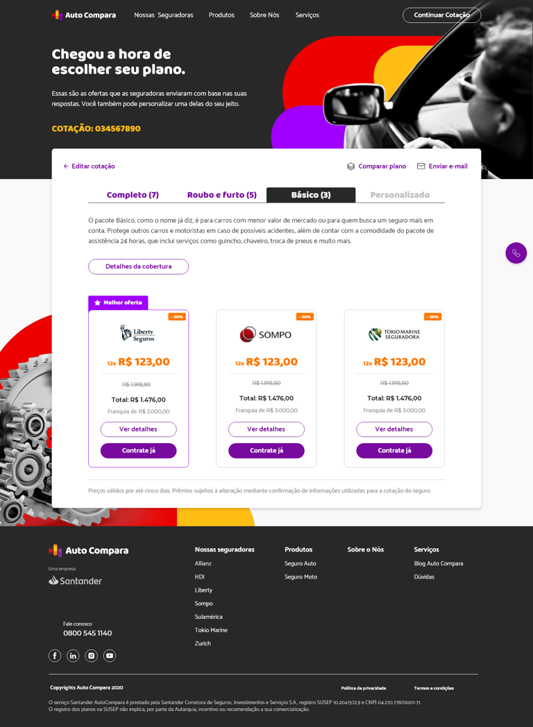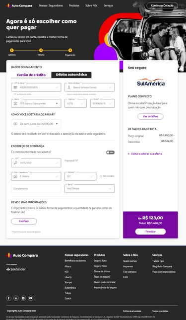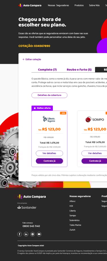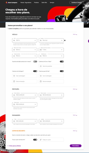 A Auto Compara, uma seguradora automotiva, enfrentava um desafio significativo: uma baixa taxa de conclusão no processo de compra de seus produtos pelos usuários. A análise de dados e feedback revelou que o fluxo de ofertas existente apresentava pontos de fricção, gerando abandono e frustração por parte dos potenciais clientes.